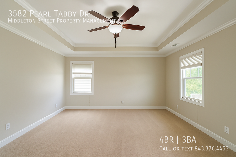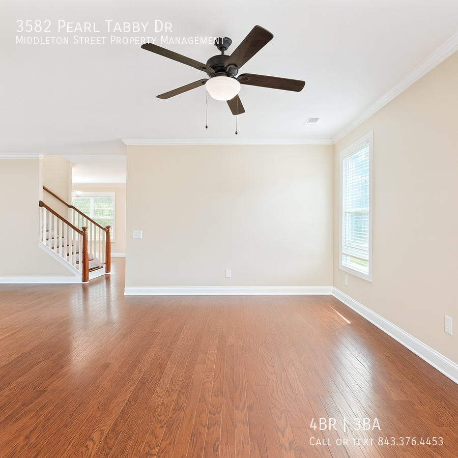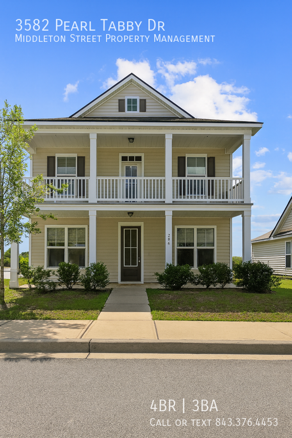 Welcome to this beautifully crafted home at 3582 Pearl Tabby Drive in the Oyster Bluff Community. This spacious residence offers 4 bedrooms and 3 full baths, with one bedroom and bathroom conveniently located on the main floor. Enjoy elegant finishes throughout, including hardwood floors in the main living areas, tile in wet areas, and plush carpet in select rooms. The kitchen features granite countertops with a large island, walk-in pantry, and stainless steel appliances—perfect for both daily living and entertaining.