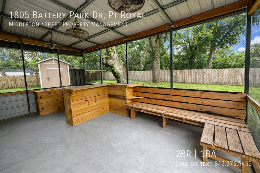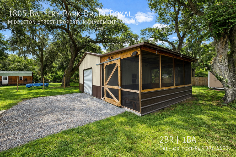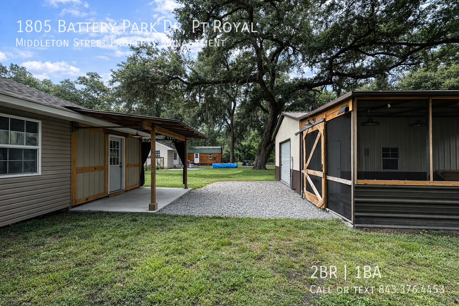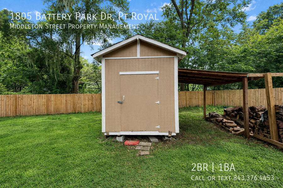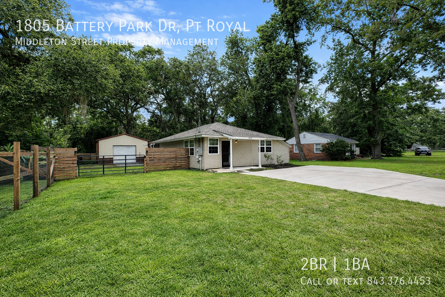 Adorable, 2 bedroom 1 bath cottage in Port Royal. Spacious backyard with one car garage/workshop with entertainment space. Fully fenced in with a storage shed. Steps from the Spanish Moss Trail, Parris Island, Port Royal and Beaufort.